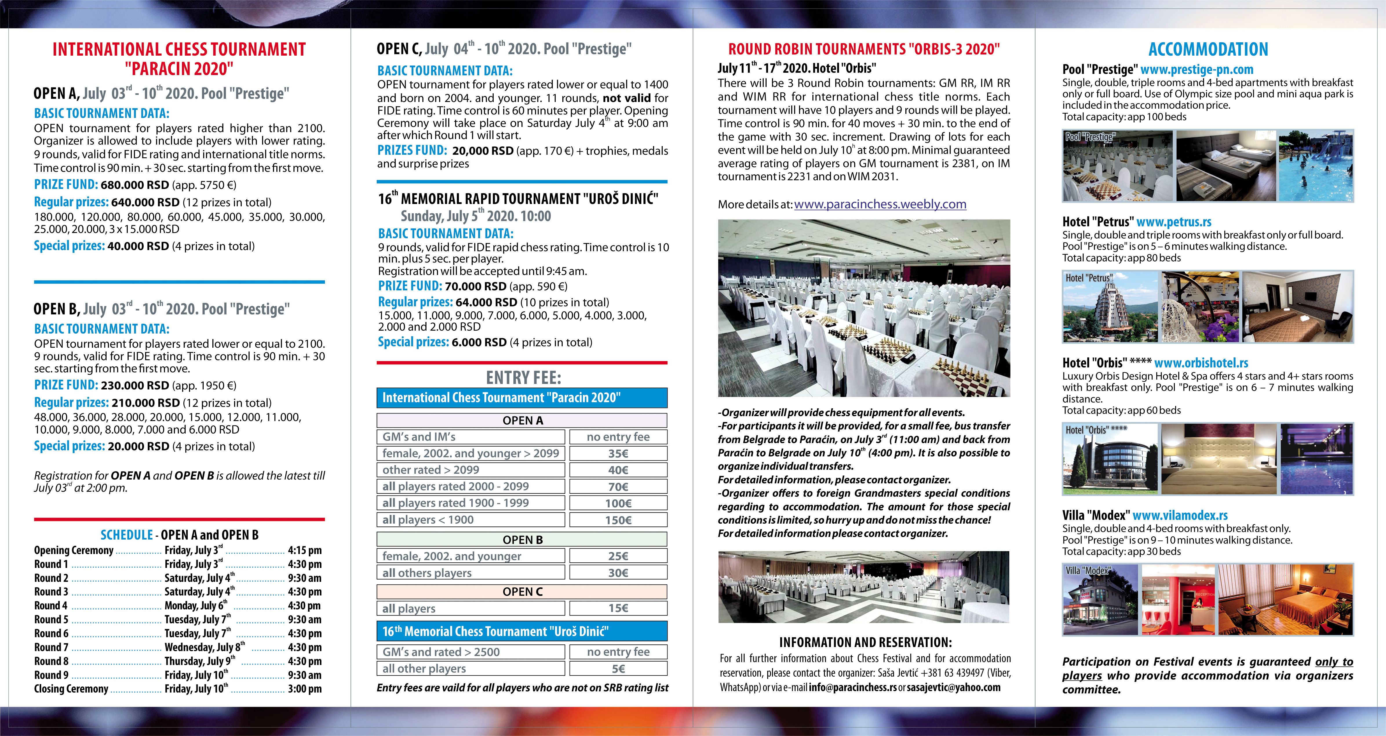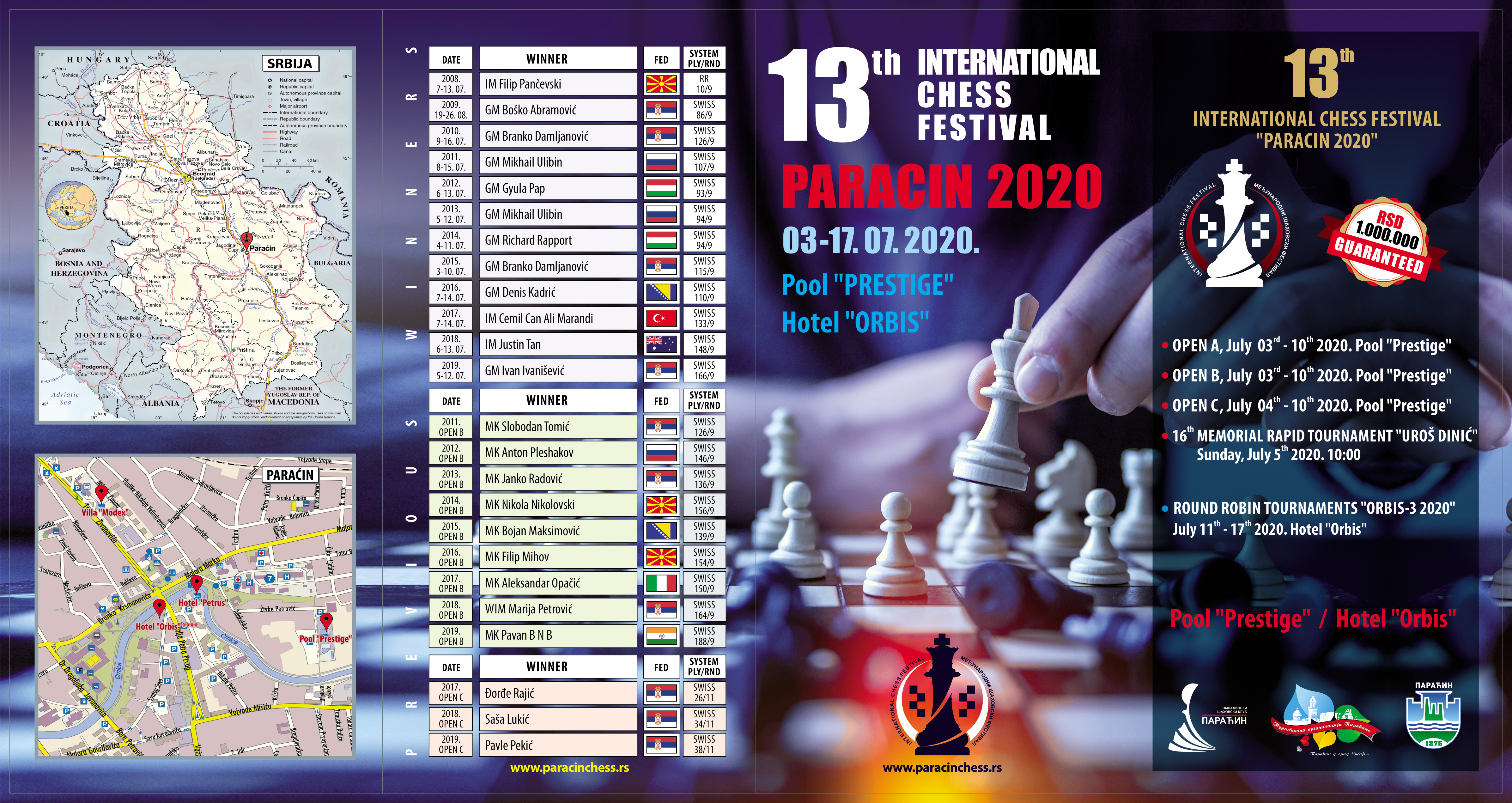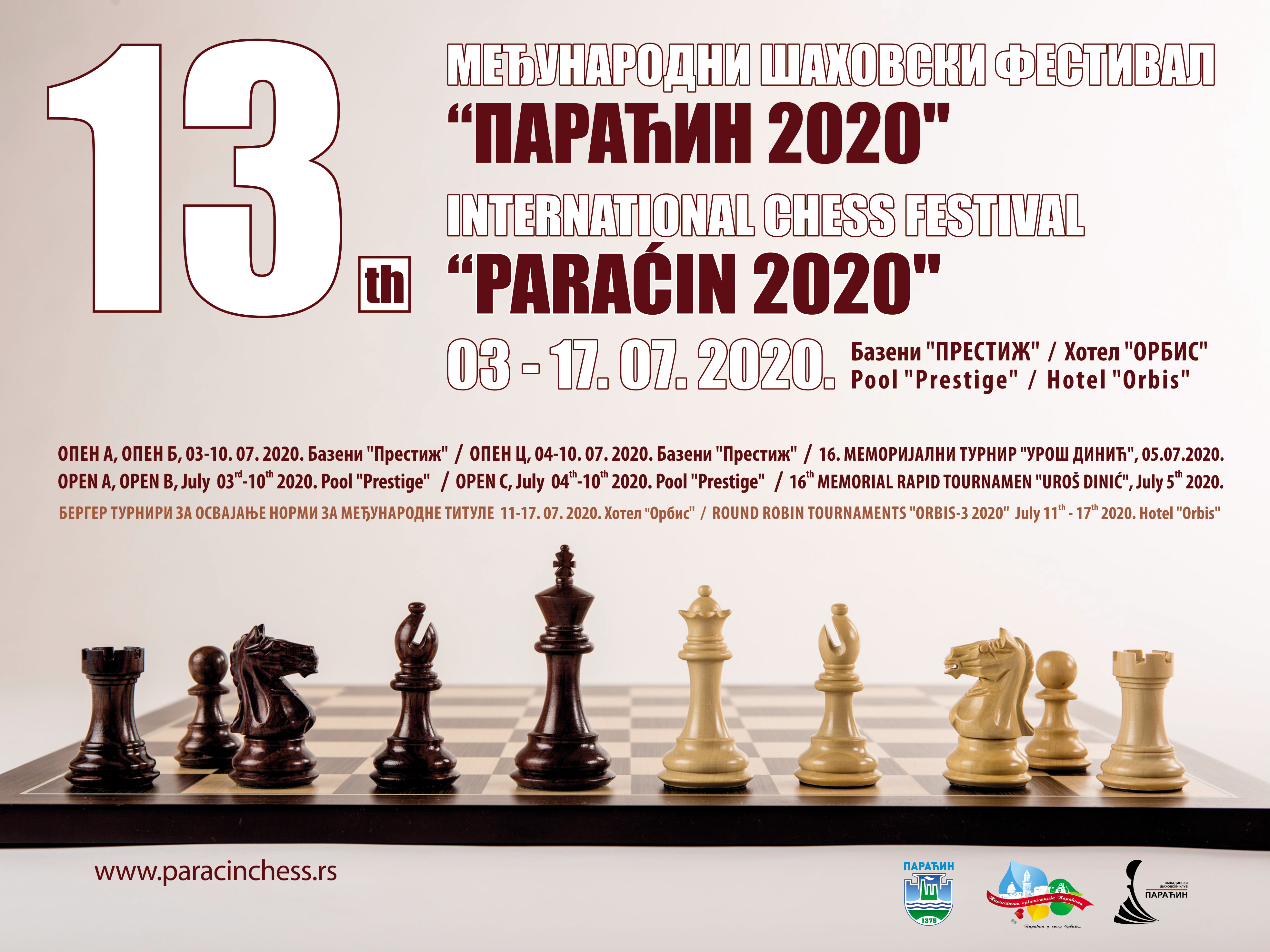 Published official regulations of the 13th International Chess Festival "Paracin 2020 ". invitation >>>